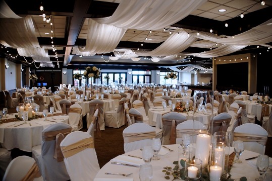 - Tables (including all guest tables, cake table, gift tables, head table, DJ table, buffet tables), chairs, and dance floor